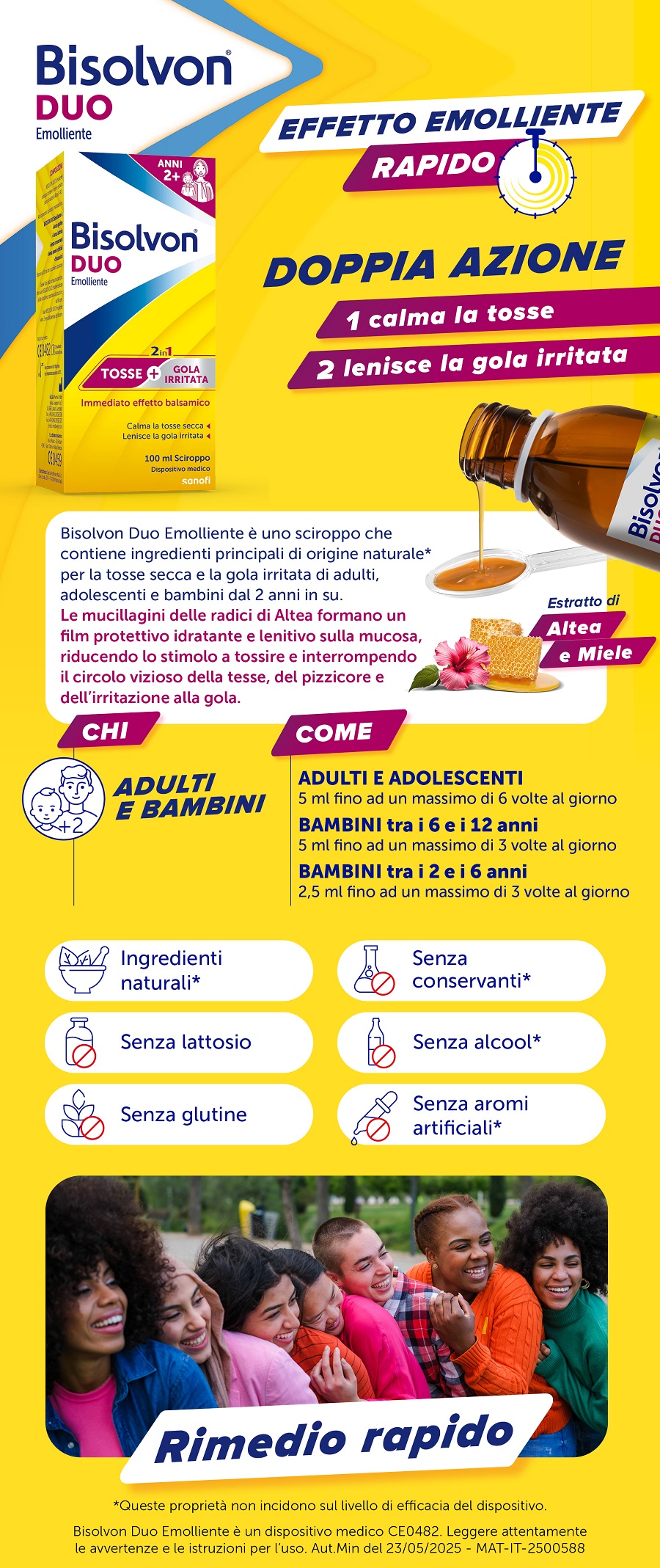 Bisolvon Duo Emolliente calma la tosse e lenisce la gola irritata effetto balsamico sciroppo 100ml