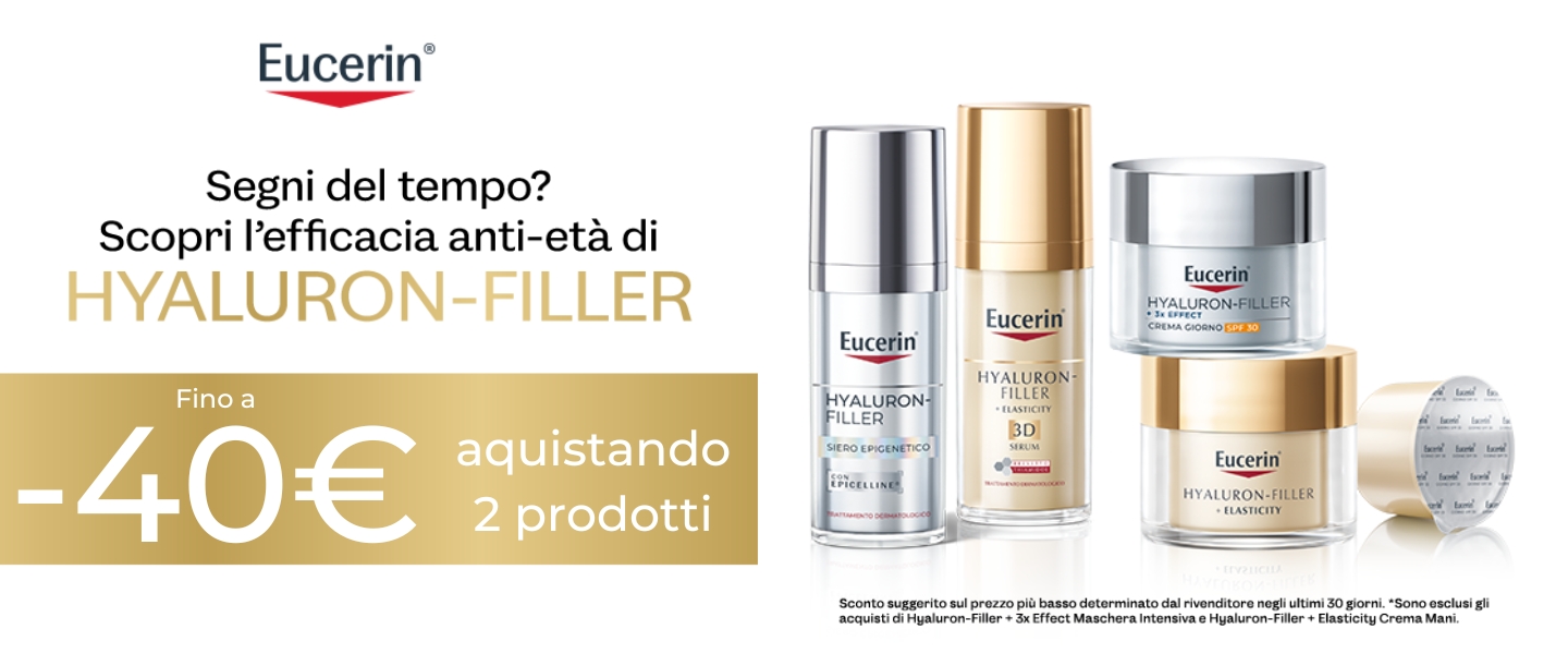 EucerinEucerin Hyaluron Filler siero epigenetico anti-età 30mlPrezzo 34,53 € Prezzo listino 54,90 €Risparmio (-37%) -