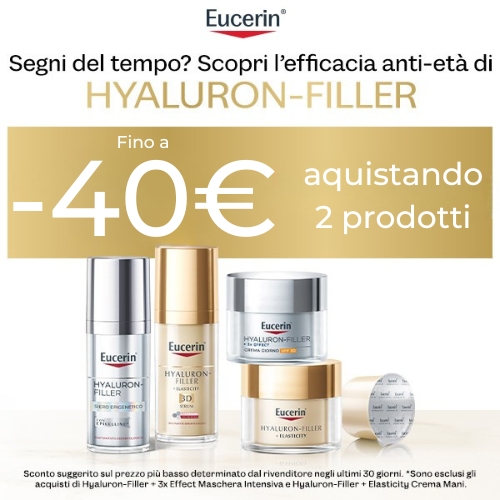 EucerinEucerin Hyaluron-Filler+Elasticity crema giorno 50ml + crema notte 50ml omaggio | offerta specialePrezzo 50,00 € Prezzo listino 87,00 €Risparmio (-43%) -